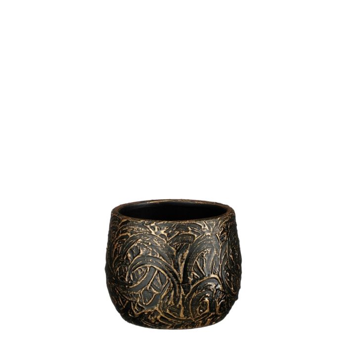 Arthur blomkruka med ett guldfärgat, rustikt mönster på mörkmålad terrakotta. Väldigt fin till exempel med gröna växter i.